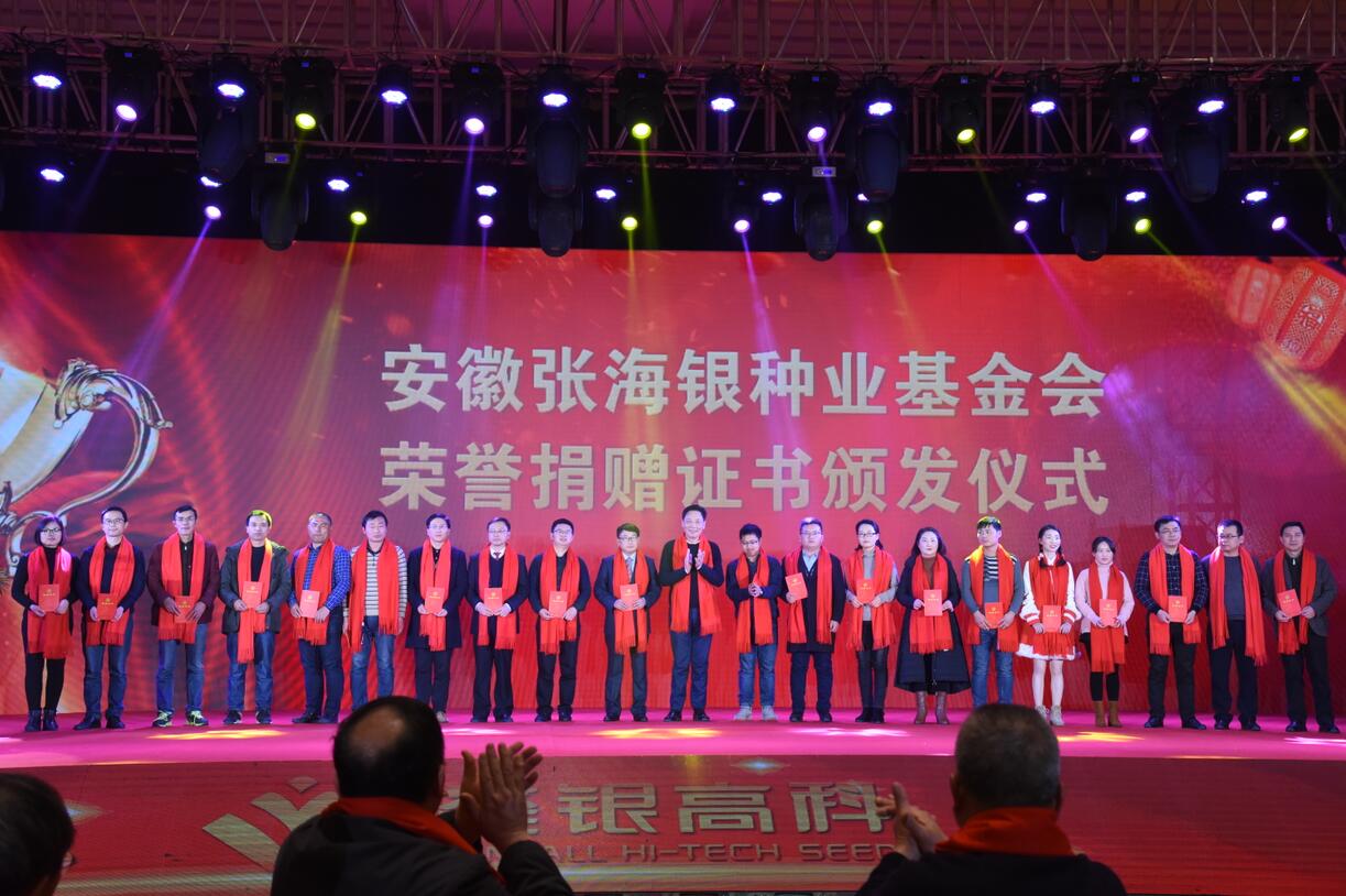 會(huì)上,對(duì)荃銀高科總部及子公司2017年度先進(jìn)集體、先進(jìn)個(gè)人進(jìn)行了表彰獎(jiǎng)勵(lì);進(jìn)行了安徽張海銀種業(yè)基金會(huì)頒發(fā)捐贈(zèng)證書儀式。