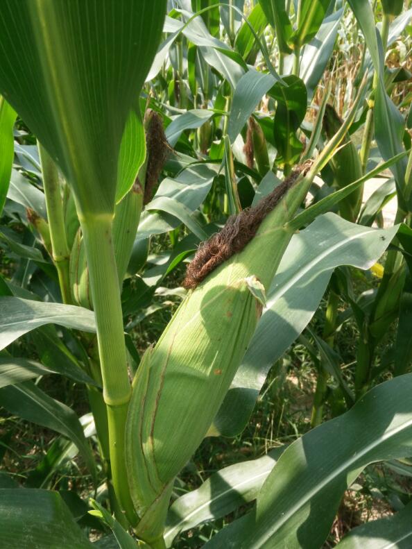 抗性表現(xiàn):2014年經(jīng)河北省農(nóng)林科學院植物保護研究所抗病性接種鑒定:中抗矮花葉病、莖腐病,抗大斑病、彎孢葉斑病,感褐斑病、小斑病。
