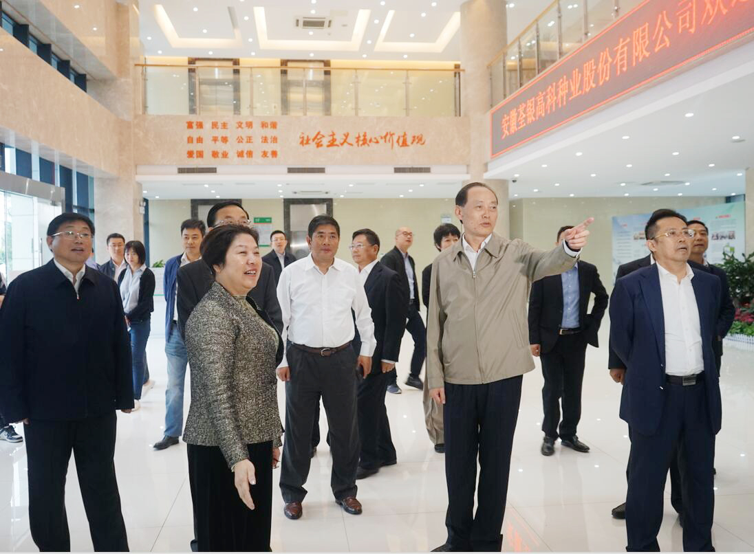 ??? 2019年10月11日下午,農(nóng)業(yè)農(nóng)村部黨組副書記、副部長余欣榮蒞臨荃銀高科考察調(diào)研,農(nóng)業(yè)農(nóng)村部鄉(xiāng)村產(chǎn)業(yè)發(fā)展司司長曾衍德、辦公廳副主任寧啟文參加調(diào)研。安徽省政府副秘書長張冬云,省農(nóng)業(yè)農(nóng)村廳黨組成員、副廳長王華,合肥市副市長王民生等領導陪同考察。荃銀高科副董事長、總經(jīng)理張琴,常務副總經(jīng)理王玉林,副總經(jīng)理、首席技術官張從合,副總經(jīng)理朱全貴、江三橋等熱情接待了余欣榮副部長一行。